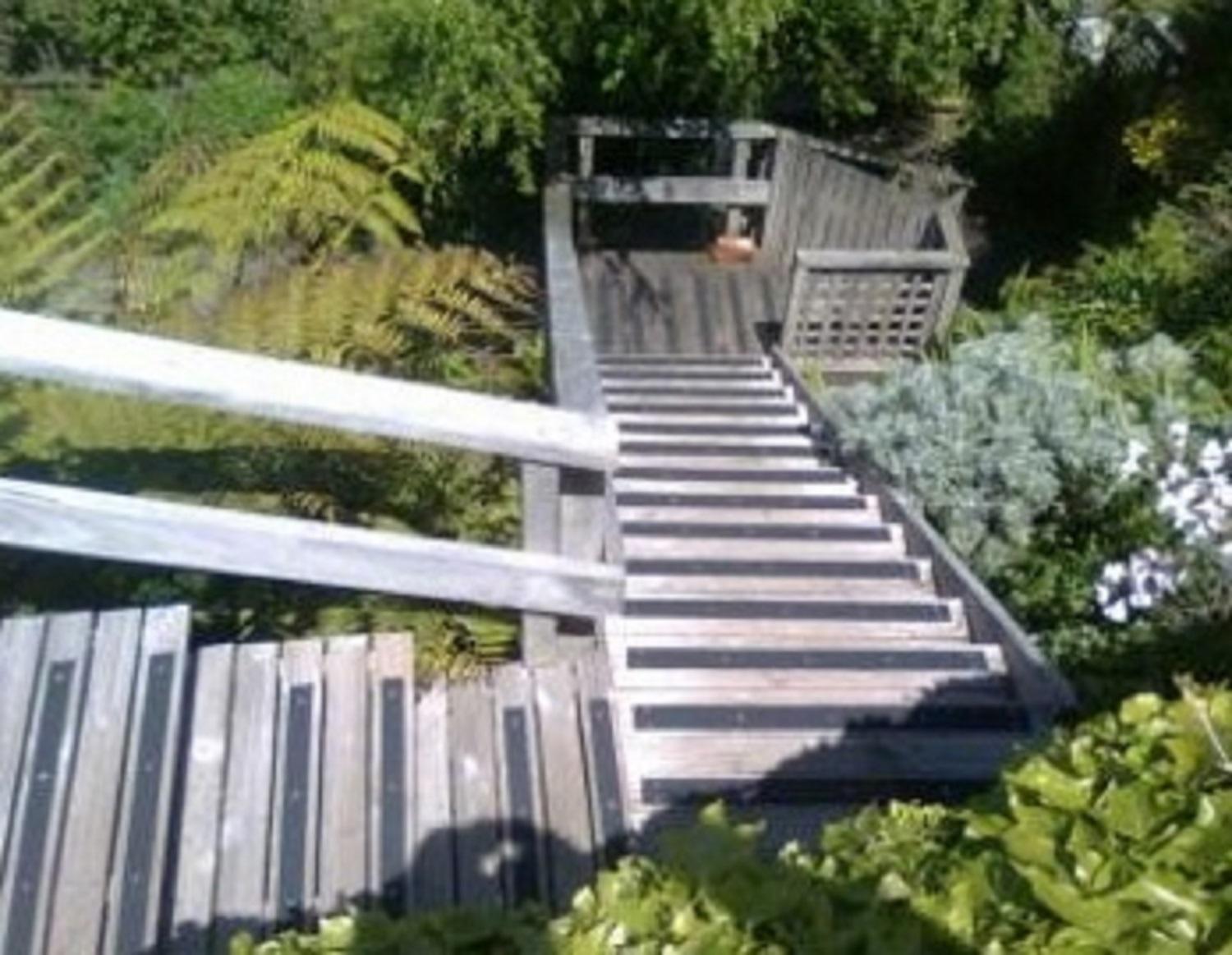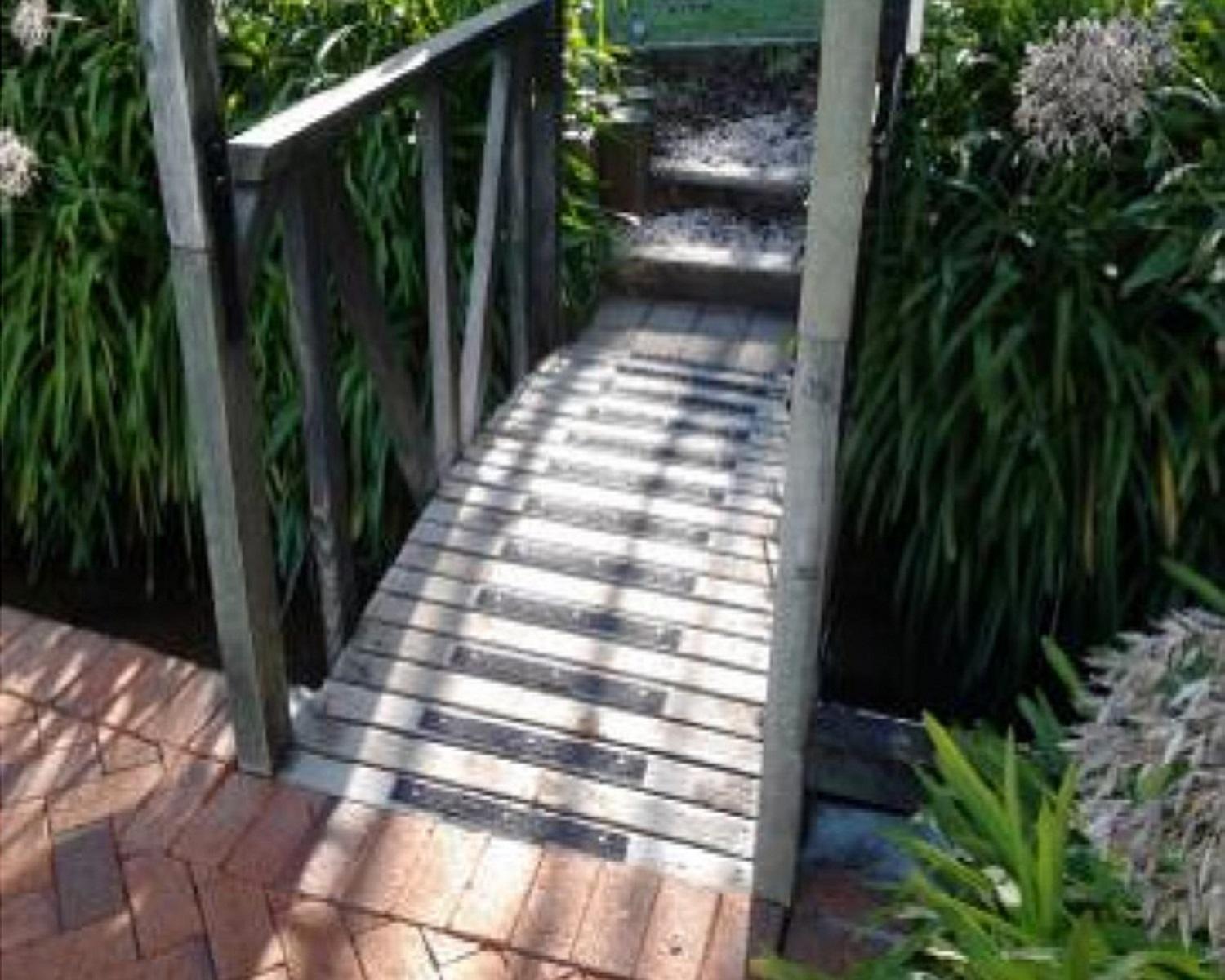 Prior to the installation of SafetyGrip Strips, the vegetation around these wooden steps meant they were often wet, making them very slippery and a danger to anyone who ventured down them.