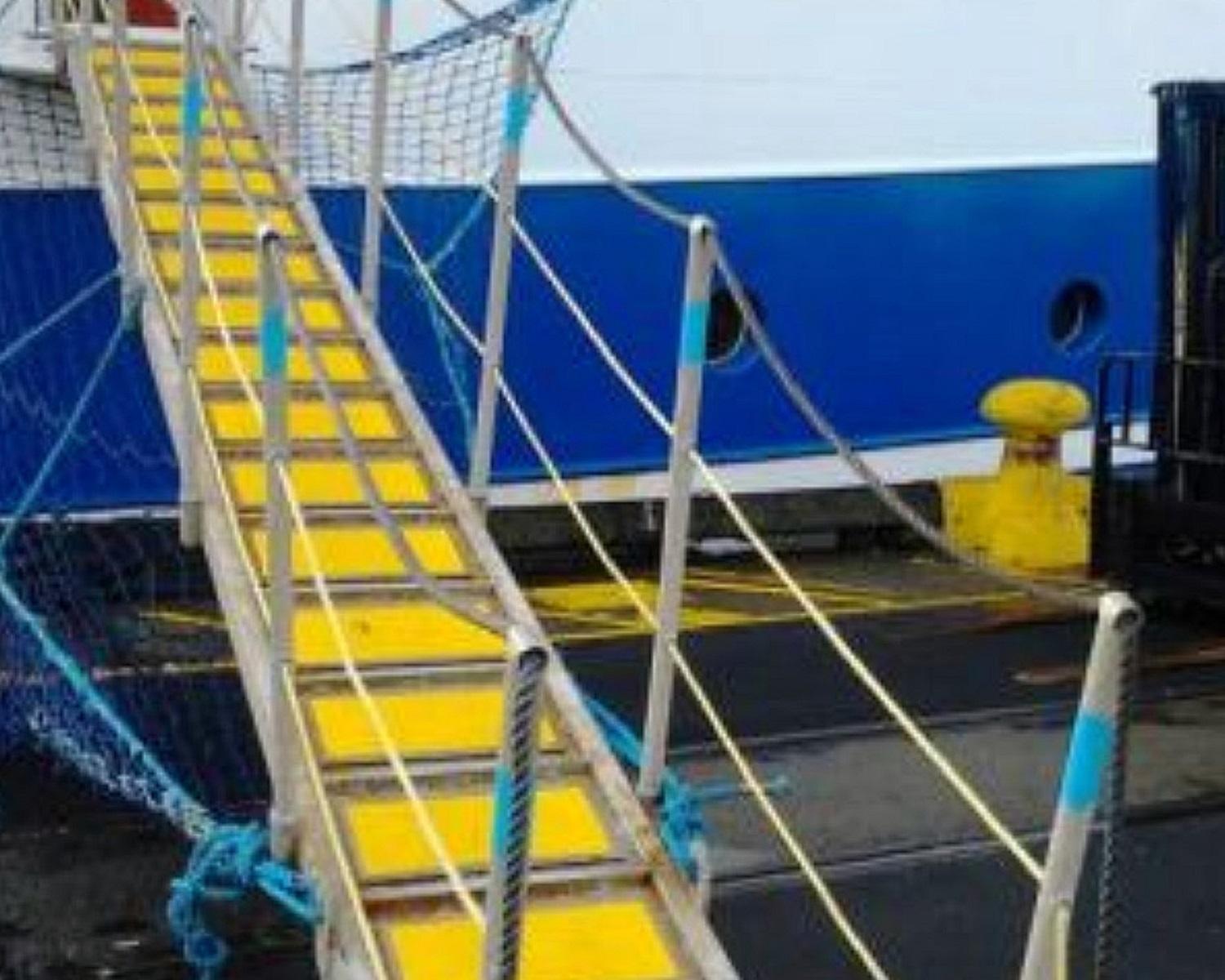 SafetyGrip Plates ensure a safe footing on the steepest of ramps, such as this "ship to shore" gangway which is subject to changes in angle due to tide heights, and also movement caused by wave motion.