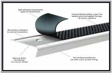 Aesthetically pleasing, protective and very safe, TredSafe nosings and strips are used widely in commercial buildings, the hospitality industry and residential properties. Tredsafe is available with 35 different profiles and a range of colours which can be matched to your requirements and decor. TredSafe products offer protection for slippery stairs and can also prevent wear to carpeted stair edges.