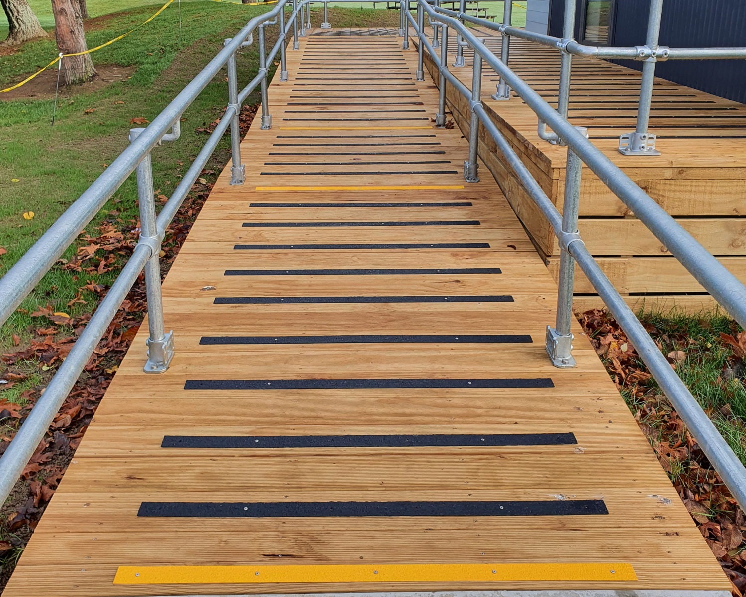 By placing a yellow strip at the top and bottom of this ramp, with black SafetyGrip Strips in between, this will help identify the change in gradient for the visually impaired.